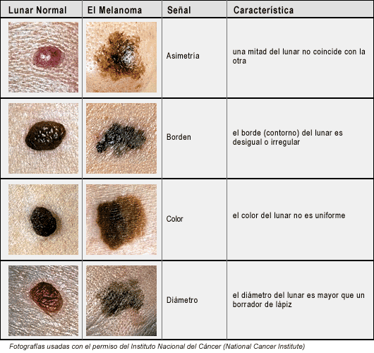 Te recomendamos que te hagas autoexploraciones periódicas de tus lunares (especialmente si tienes muchos) y que contactes con un dermatólogo si alguno te resulta sospechoso. Recuerda que la mayoría de casos de cáncer de piel tipo melanoma se pueden prevenir limitando la exposición a la luz ultravioleta, usando fotoprotectores, prendras de manga larga, no usando lámparas bronceadoras etc